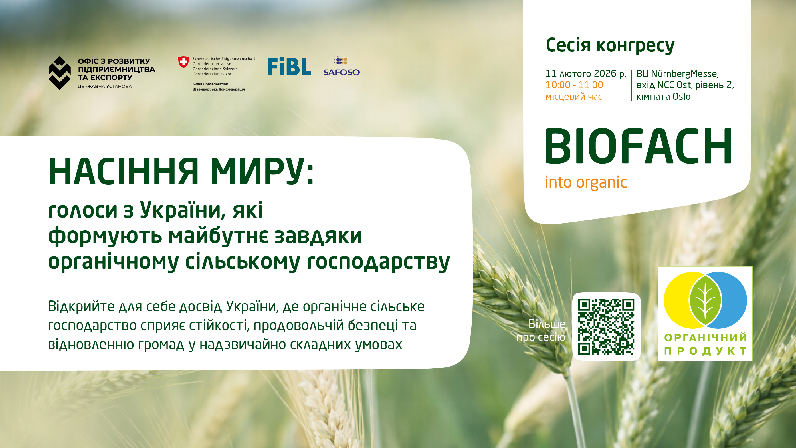 Сесія конгресу виставки BIOFACH: «Насіння миру: голоси з України, які формують майбутнє завдяки органічному сільському господарству»