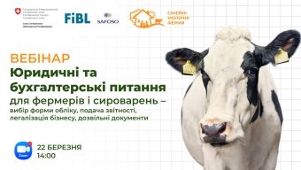 Вебінар «Юридичні та бухгалтерські питання для фермерів і сироварень – вибір форми обліку, подача звітності, легалізація бізнесу, дозвільні документи»