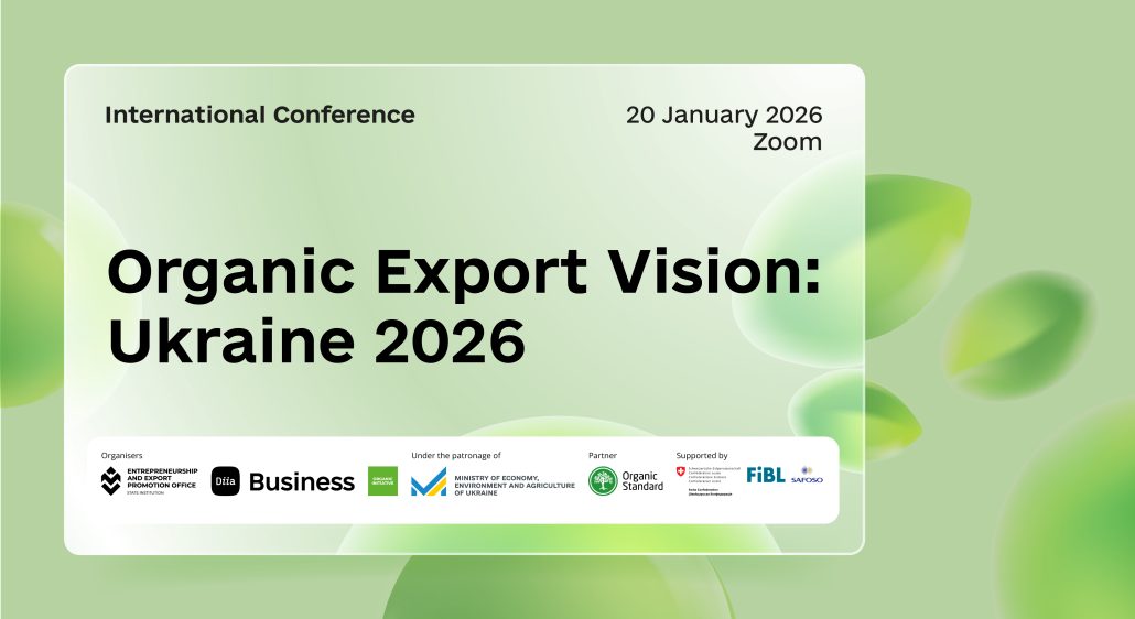 On 20 January 2026, the international online conference “Organic Export Vision: Ukraine 2026” will take place. The event will focus on the key outcomes of 2025 and outlooks for 2026, and will serve as an important platform for analysing the current state of organic exports from Ukraine and shaping a shared vision for the further development of the sector under wartime conditions.