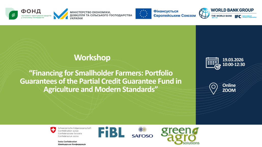 On 19 March 2026, a workshop titled “Financing for Smallholder Farmers: Portfolio Guarantees of the Partial Credit Guarantee Fund in Agriculture and Modern Standards” will take place, focusing on opportunities to access finance for small agricultural producers.