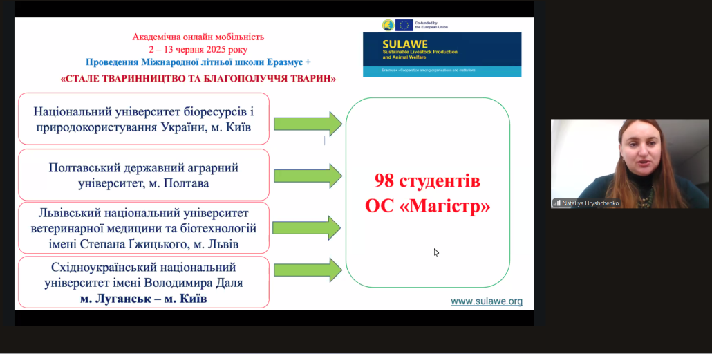 Nadiya Magrelo, Associate Professor of Department of Hygiene, Sanitation and General Veterinary Prevention, Stepan Gzhytskyi National University of Veterinary Medicine and Biotechnologies Lviv, Olena Smirnova, International Affairs Expert, Poltava State Agrarian University, and Nataliya Hrishchenko presented the results of the SULAWE project over three years.