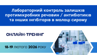 Онлайн-тренінг «Лабораторний контроль залишків протимікробних речовин / антибіотиків та інших інгібіторів в молоці сирому»