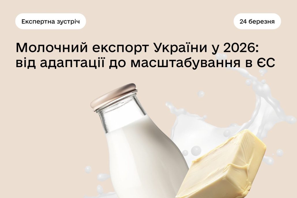 24 березня 2026 року о 15:00 відбудеться онлайн-експертна дискусія «Молочний експорт України у 2026 – від адаптації до масштабування в ЄС», присвячена аналізу результатів експорту 2025 року, актуальним регуляторним змінам ЄС та можливостям посилення присутності українських виробників на європейських ринках.