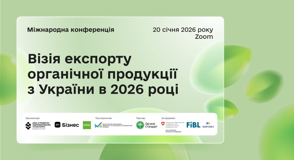 Міжнародна конференція «Візія експорту органічної продукції з України в 2026 році» організована державною установою «Офіс з розвитку підприємництва та експорту», національним проєктом Дія.Бізнес спільно з громадською спілкою «Органічна ініціатива», у партнерстві з органом сертифікації «Органік Стандарт» під патронатом Міністерства економіки, довкілля та сільського господарства України за підтримки Швейцарії в межах швейцарсько-української програми «Розвиток торгівлі з вищою доданою вартістю в органічному та молочному секторах України» (QFTP), що впроваджується Дослідним інститутом органічного сільського господарства (FiBL, Швейцарія) у партнерстві із SAFOSO AG (Швейцарія).