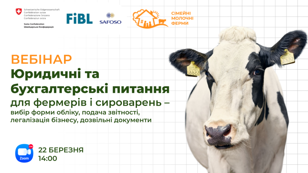 Другий онлайн-модуль «Юридичні та бухгалтерські питання для фермерів і сироварень – вибір форми обліку, подача звітності, легалізація бізнесу, дозвільні документи» відбудеться вже 22 березня 2026 року о 14.00.