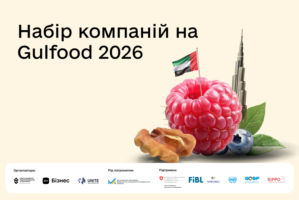 Національний стенд України на Gulfood 2026 буде організовано державною установою «Офіс з розвитку підприємництва та експорту», національним проєктом Дія.Бізнес, громадською організацією «Юнайт Україна» спільно з громадською спілкою «Український експортний альянс» під патронатом Міністерства економіки, довкілля та сільського господарства України та за підтримки Швейцарії в межах трьох програм: