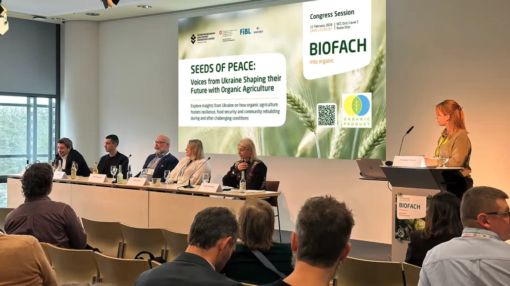 11 лютого в межах конгресу BIOFACH відбулася конференція «Насіння миру. Голоси з України, які формують майбутнє завдяки органічному сільському господарству». Представники держави та бізнесу обговорювали практичні рішення для перебудови логістики, адаптації виробництва, збереження якості продукції та виконання міжнародних контрактів в умовах війни. Йшлося про щоденну роботу з довірою партнерів та довгострокову присутність України на міжнародних ринках.