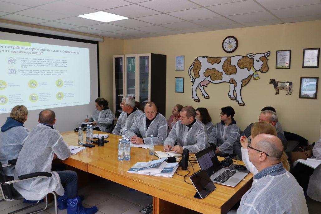 Навчання включало теоретичну та практичну частини. Для ефективного засвоєння знань головна консультантка компонента «Молочний сектор», QFTP Вікторія Лець розпочала теоретичну частину з інтерактивного опитування для оцінки рівня знань учасників щодо національного законодавства про благополуччя сільськогосподарських тварин під час їх утримання та надання роз’яснення тих питань, на які учасники відповіли невірно. Також під час теоретичної частини тренінгу Юлія Глухонець, завідувачка навчально-методичного відділу ДНДІЛДВСЕ, представила особливості проведення навчань для дорослої аудиторії, а заступник директора Департаменту безпечності харчових продуктів та ветеринарної медицини Держпродспоживслужби Дмитро Унгурян висвітлив підходи до навчання інспектора і важливі акценти, які мають враховуватись під час інспектування.