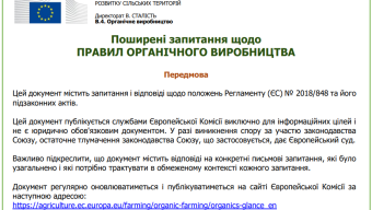 Публікація Єврокомісії щодо положень Регламенту (ЄС) № 2018/848 та його підзаконних актів «Поширені запитання щодо правил органічного виробництва» від 22 січня 2026